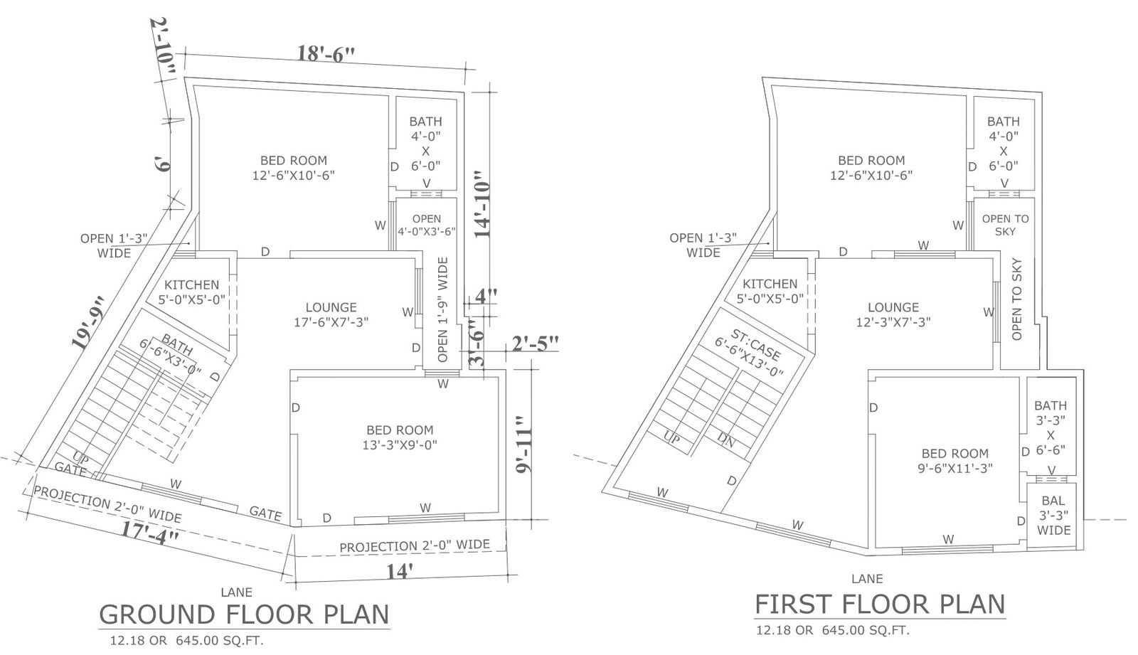 645 Sq. Ft. Residential House Floor Plan in DWG Format