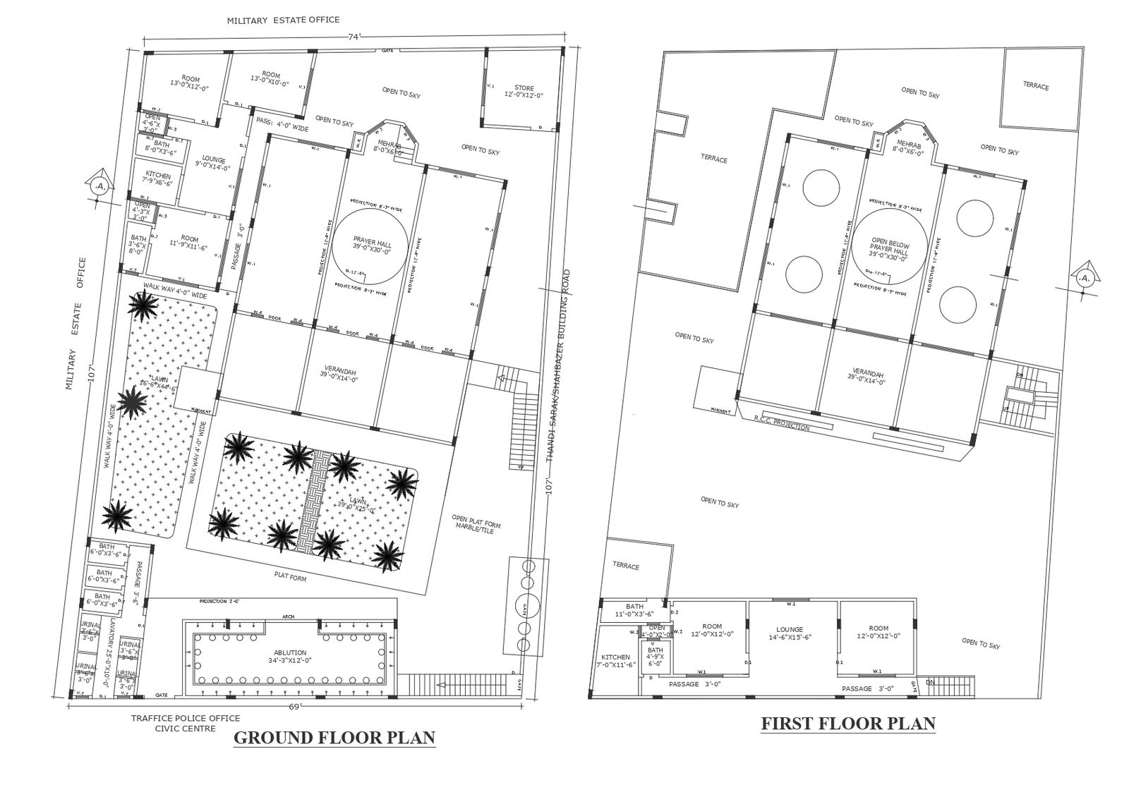 Layout Plans for Ground and First Floors of Traffic Police Office In AutoCAD File
