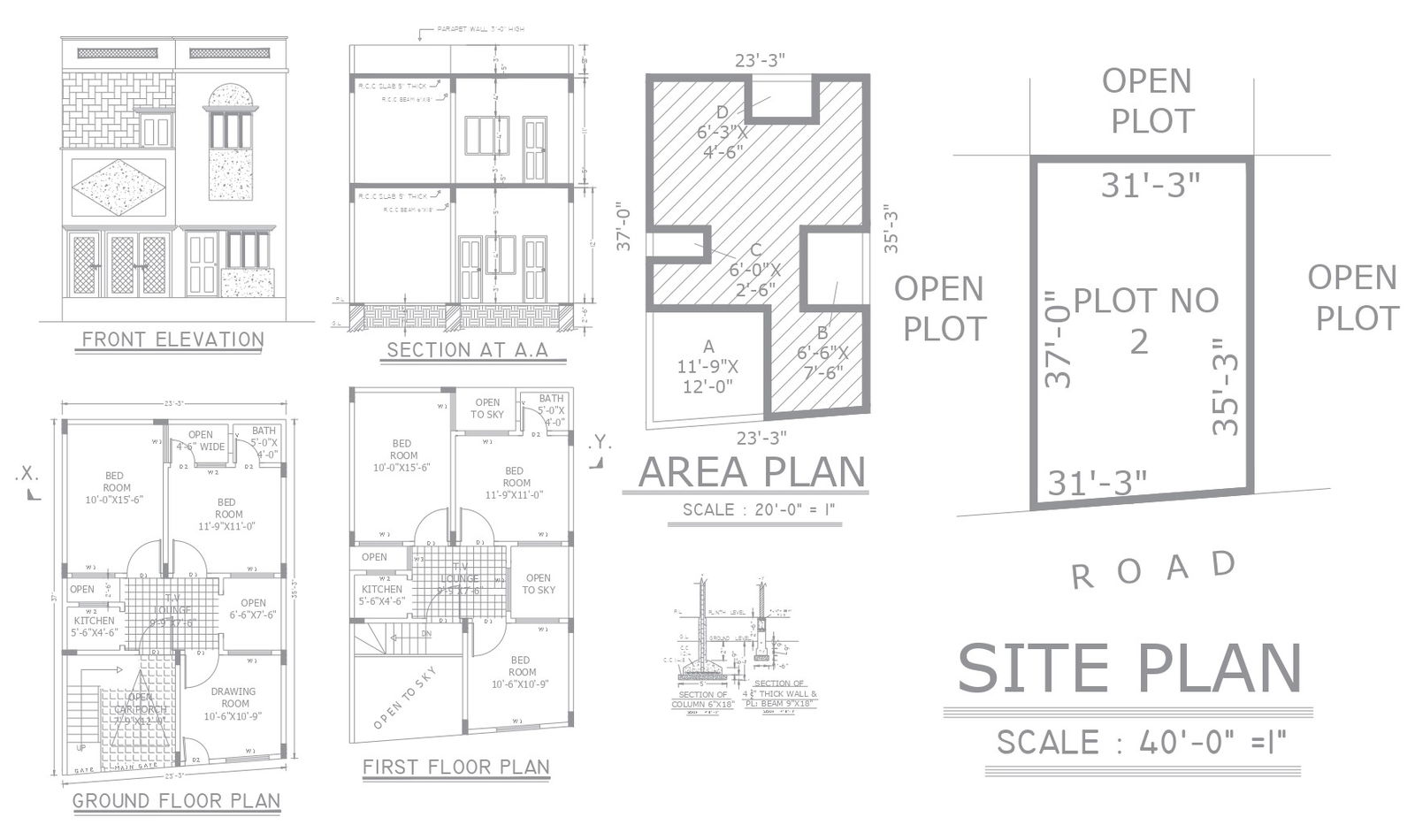 Height levels for house plan with elevation section and all details dwg autocad drawing .