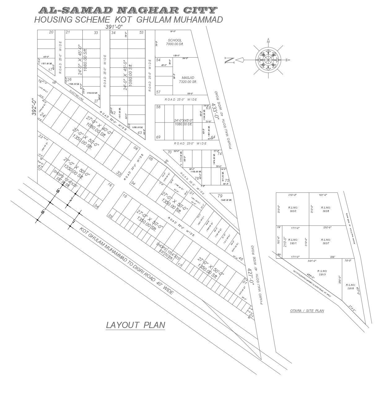 Urban design for Al samad naghar city housing scheme kot ghulam mohammad with details dwg autocad drawing .