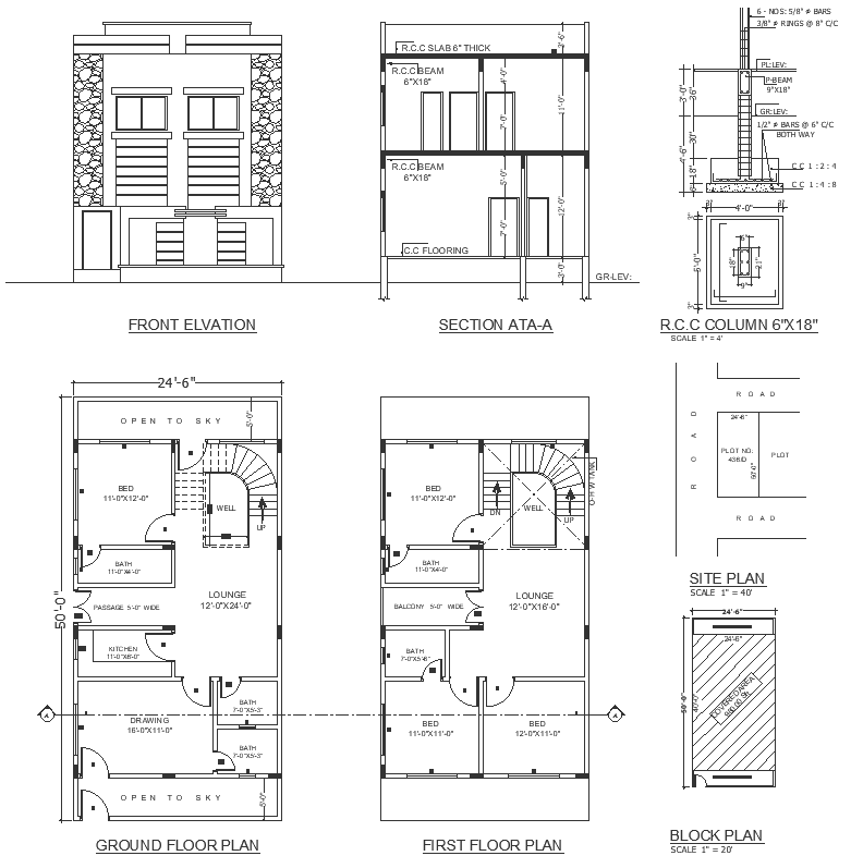 Covered area block plan and site plan details RCC column detail dwg autocad drawing.