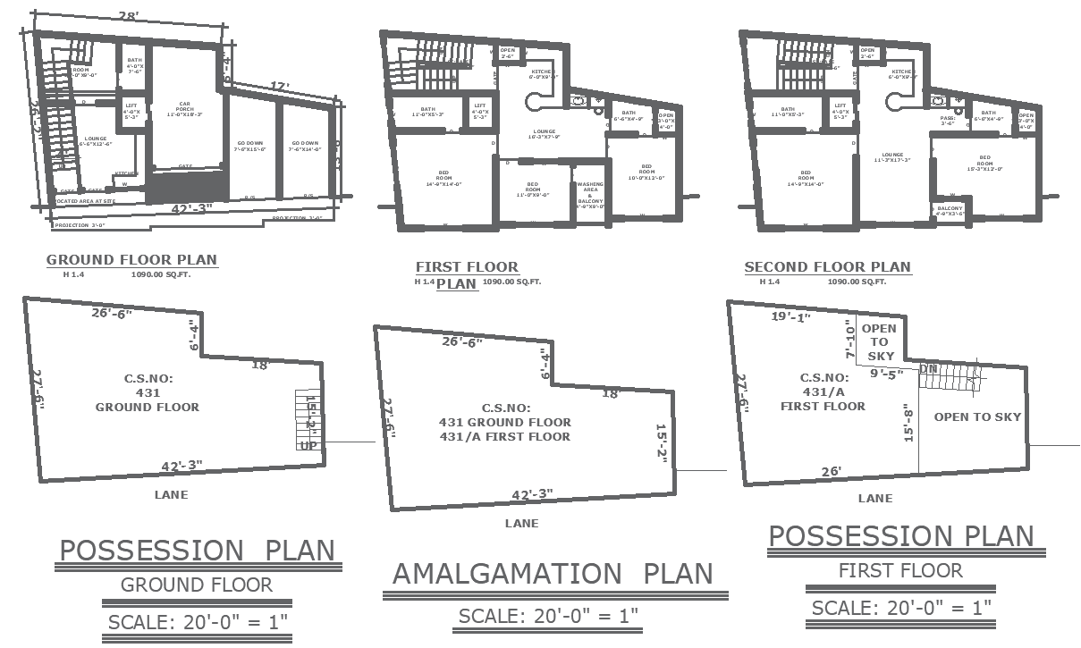 Possession plan for ground and first floor with amalgamation plan design dwg autocad drawing .