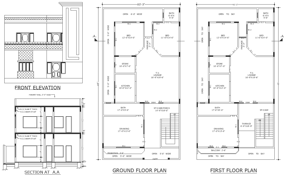 Tenant system house plan with elevation and other details dwg autocad drawing .