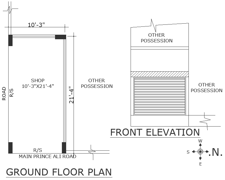 Main prince ali road plot details and possession detail dwg autocad drawing .