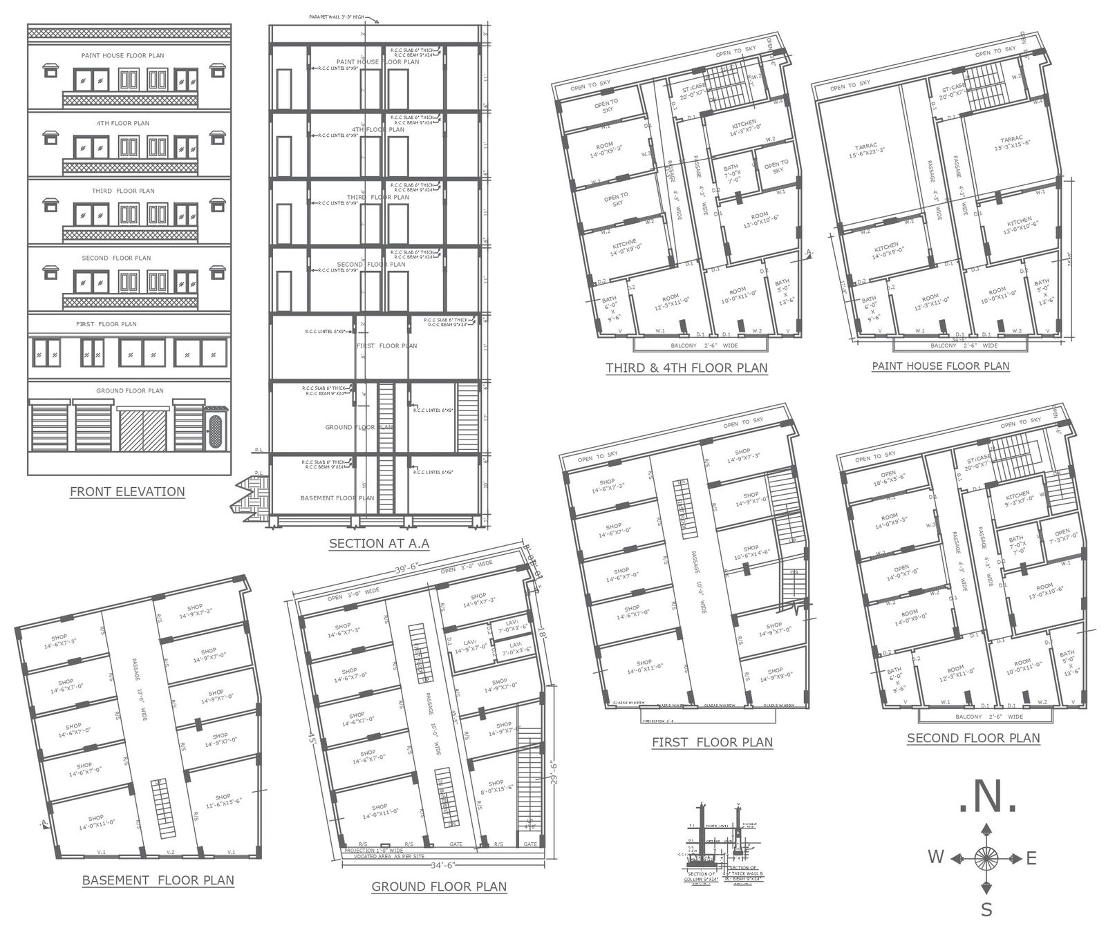 Penthouse design with all floor plan elevation and section detail DWG AutoCAD drawing.