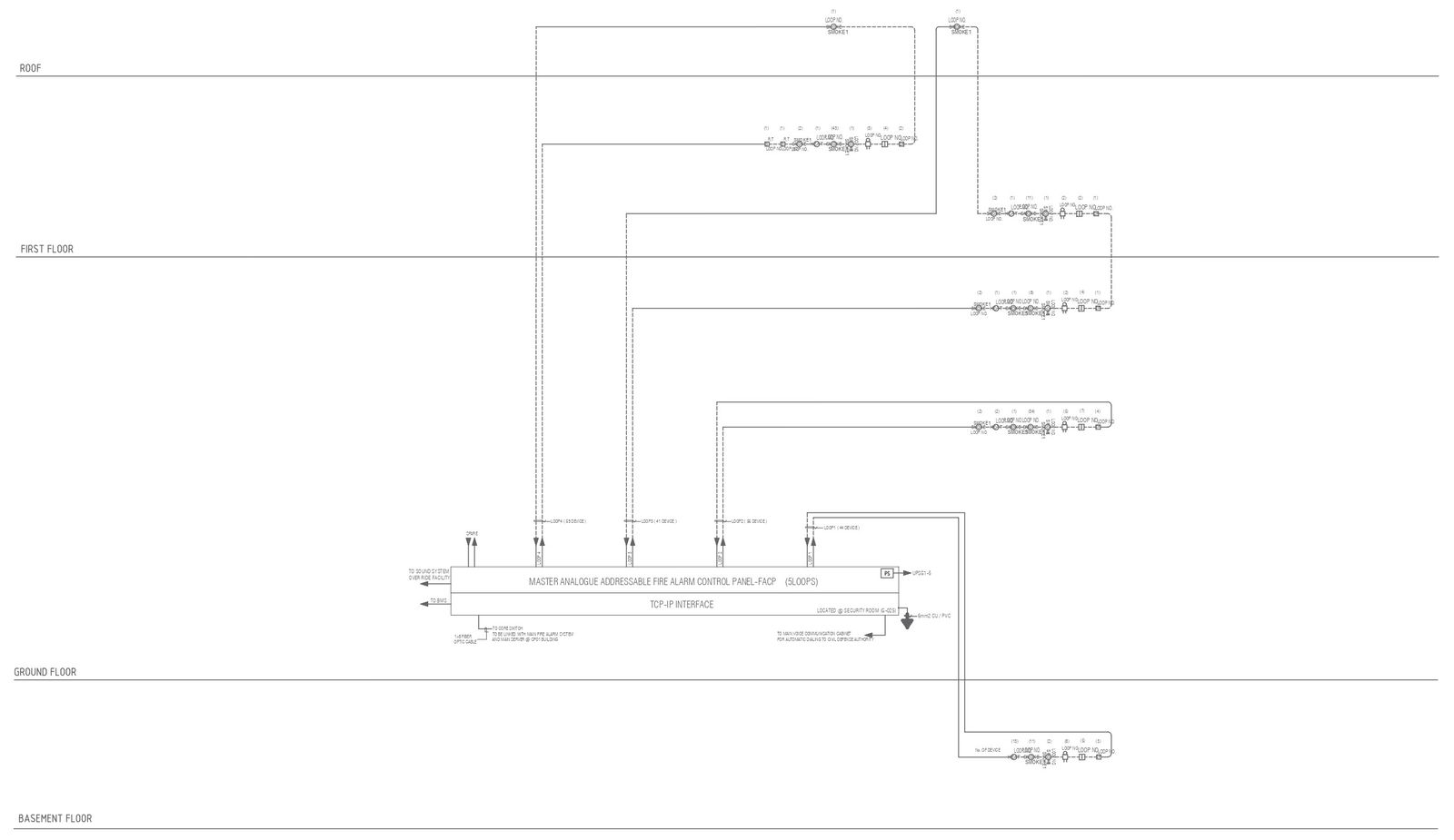 Fire alarm control panel electric layout with detailed wiring DWG AutoCAD drawing