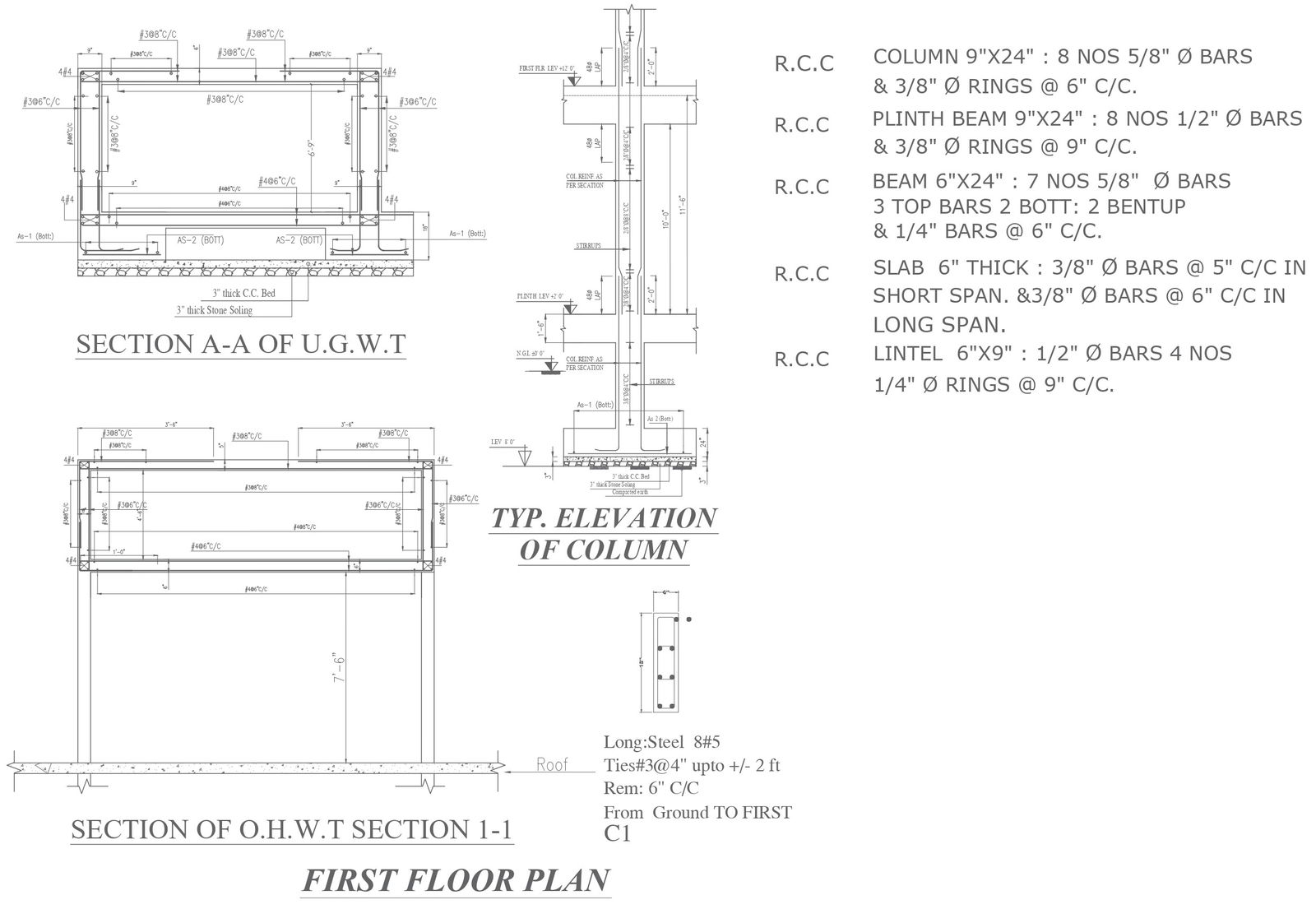 Section with all small details of underground water tank and elevated water tank DWG AutoCAD drawing
