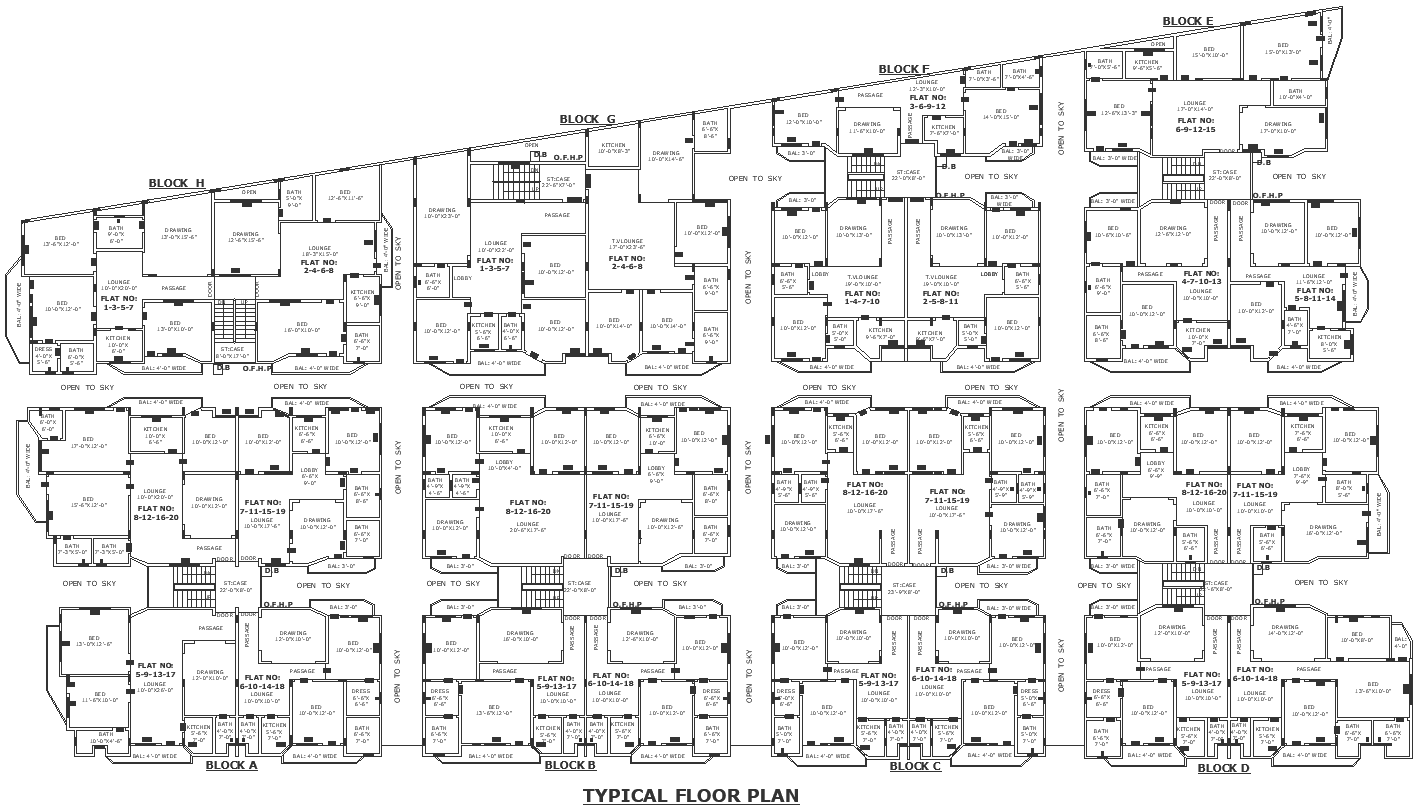 Housing society detail planning of two bhk apartment with 8 wings layout DWG AutoCAD drawing