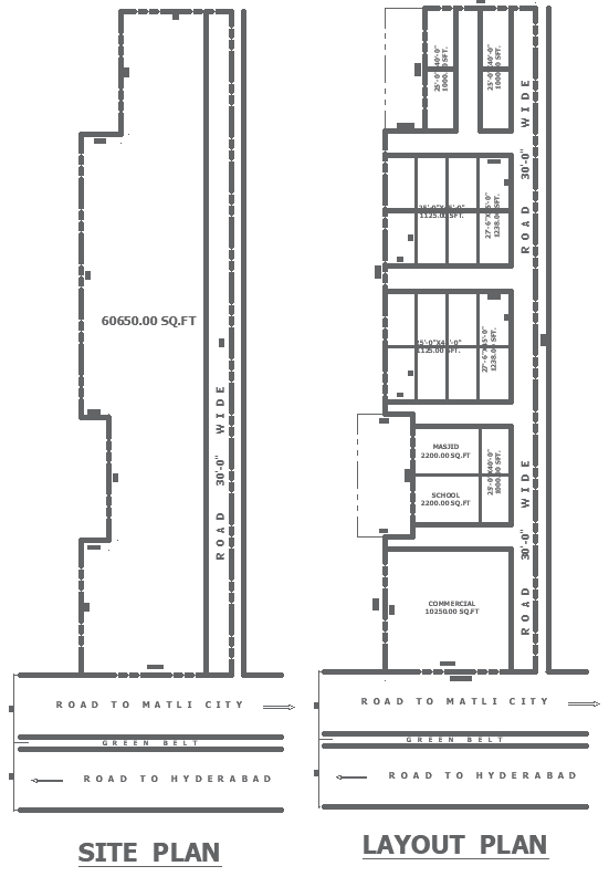 60650sft plot planning with layout plan of school musjid and commercial building detail DWG AutoCAD drawing