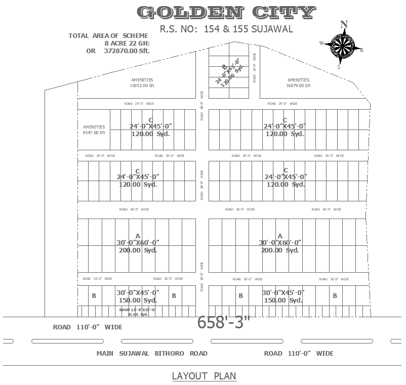 City planning with all amenities detail layout plan plot division in size of 120syd DWG AutoCAD drawing