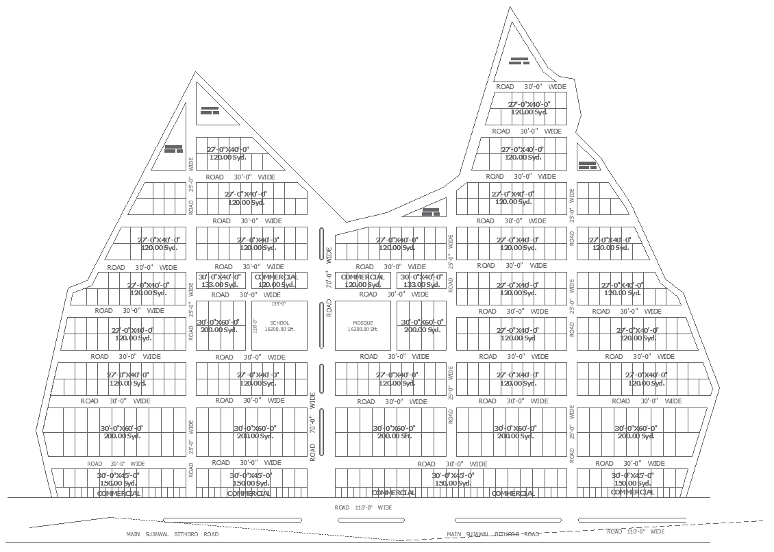 Town planning layout includes commercial recidencial block division and school and masjid design DWG AutoCAD drawing