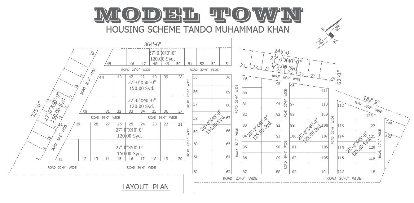 Model Town Housing Scheme Tando Muhammad Khan detail layout plan DWG AutoCAD drawing