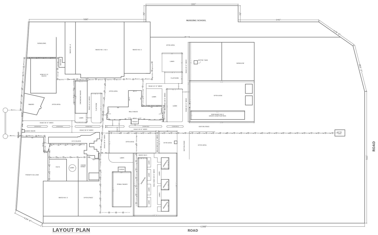 Colony design with nursing school private collage different wards inside plot and detail of septic tank plan layout DWG AutoCAD drawing