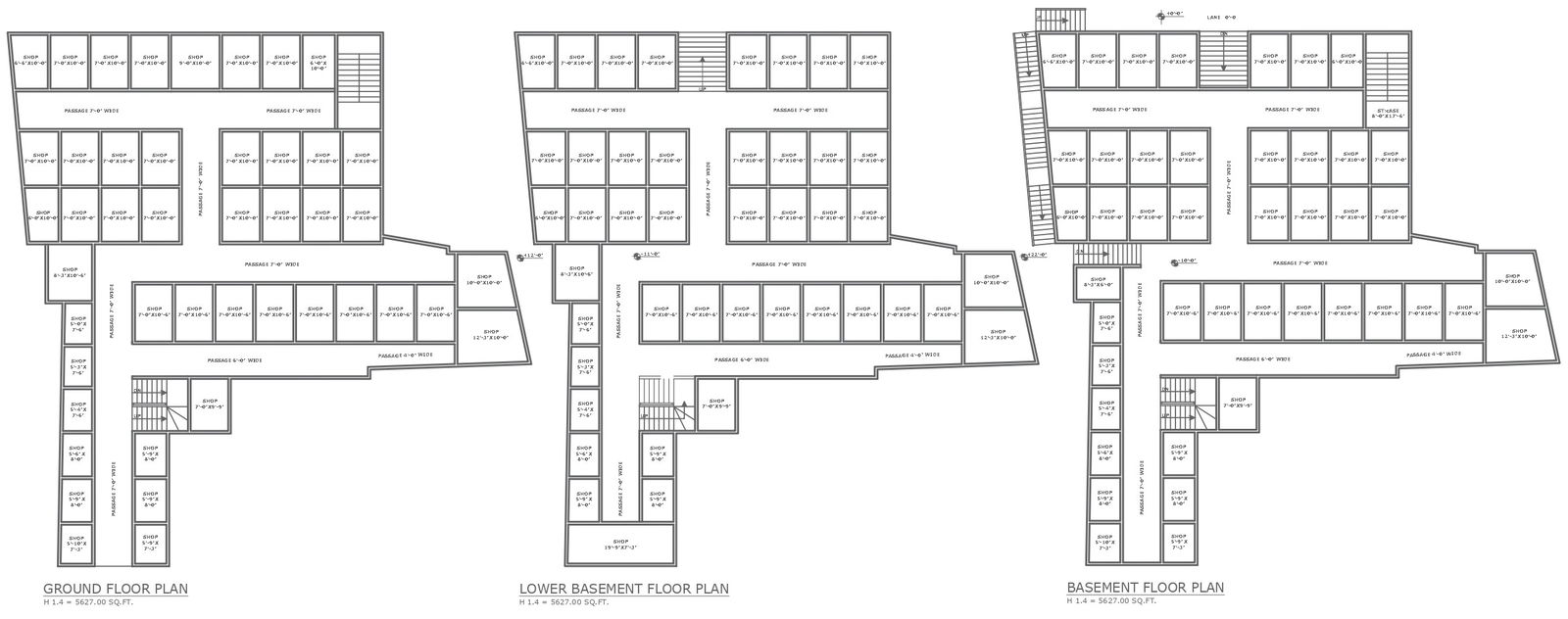 Commercial building design on plot area of 5627sft shops division in 7ft X 10ft detailed layout all floor plan DWG AutoCAD drawing