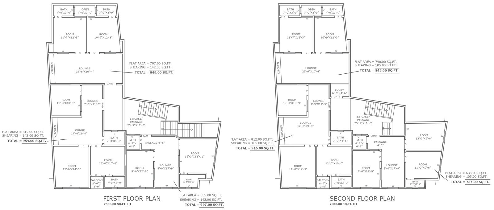 2BHK apartment design on plot area of 2500sft detail layout plan of all floor DWG AutoCAD drawing