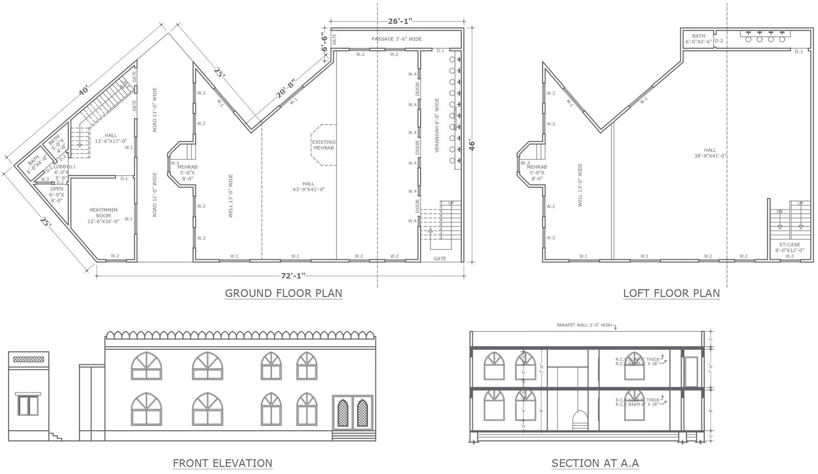 Masjid detailed design with mohtamim room plan section and elevation detail DWG AutoCAD drawing