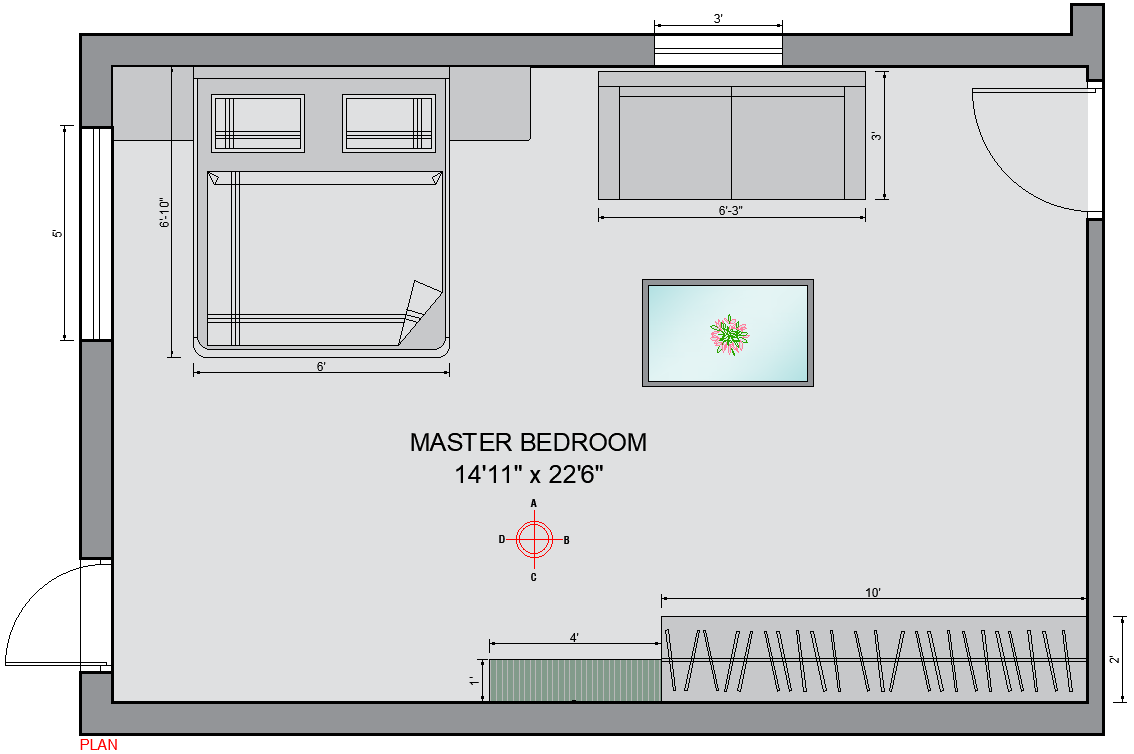 Master bedroom design with two entry doors and rendered plan dwg autocad drawing .