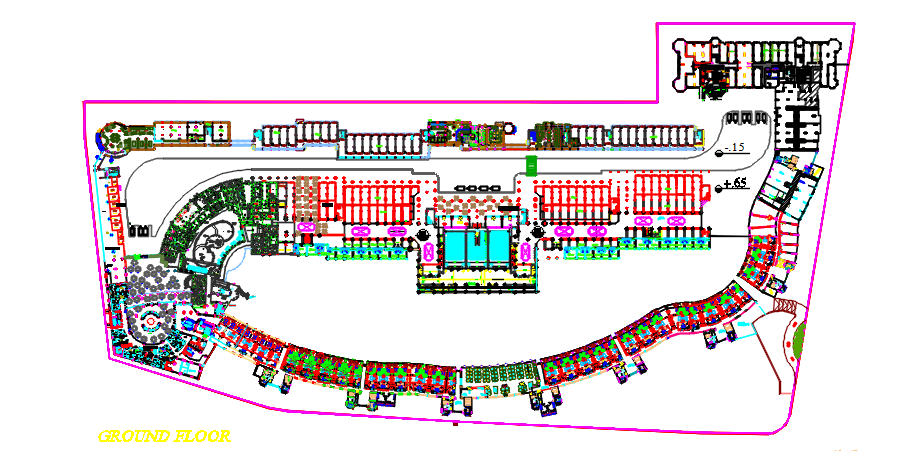 Hotel Porto Marina Final layout, layout plan of a big hotel design with complete detailing, greenary, landscaping etc in auto cad format