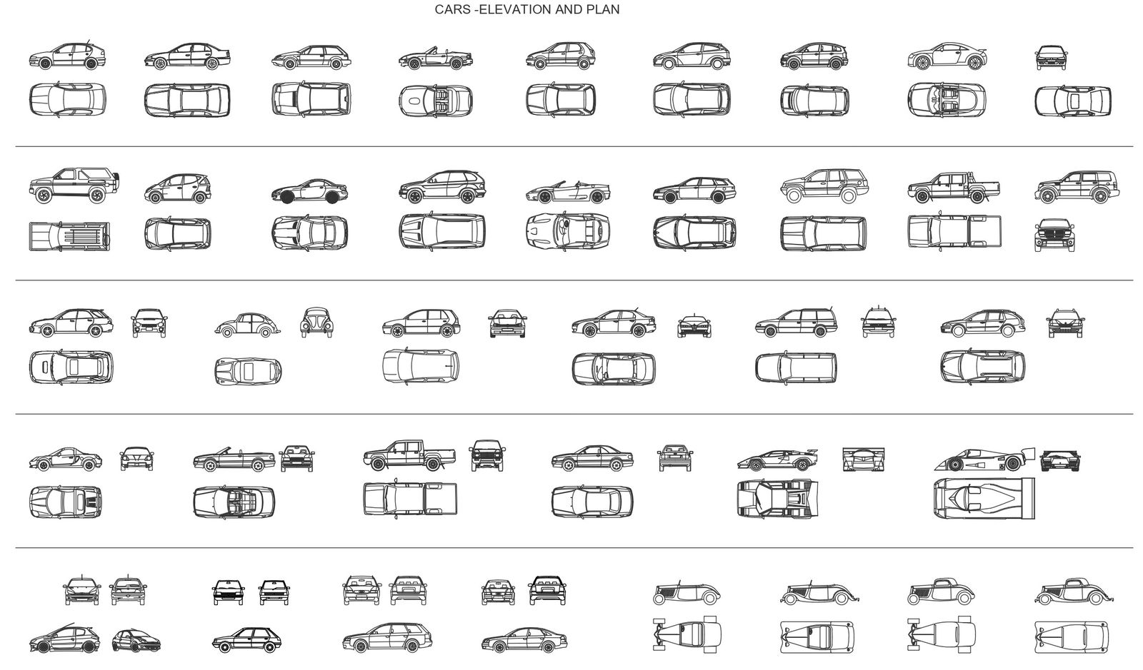 Cars cad block with top view and elevation dwg autocad drawing .