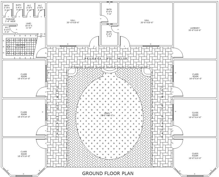School design with 8ft wide passage detailed plan DWG autoCAD drawing.