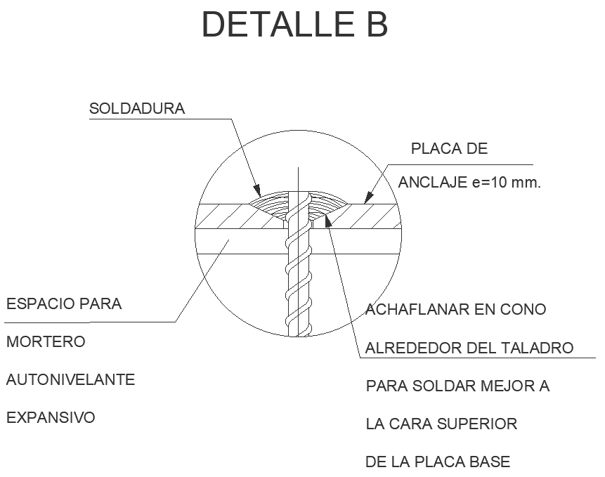 Anchor welding details with space for mortar and other details dwg autocad drawing .