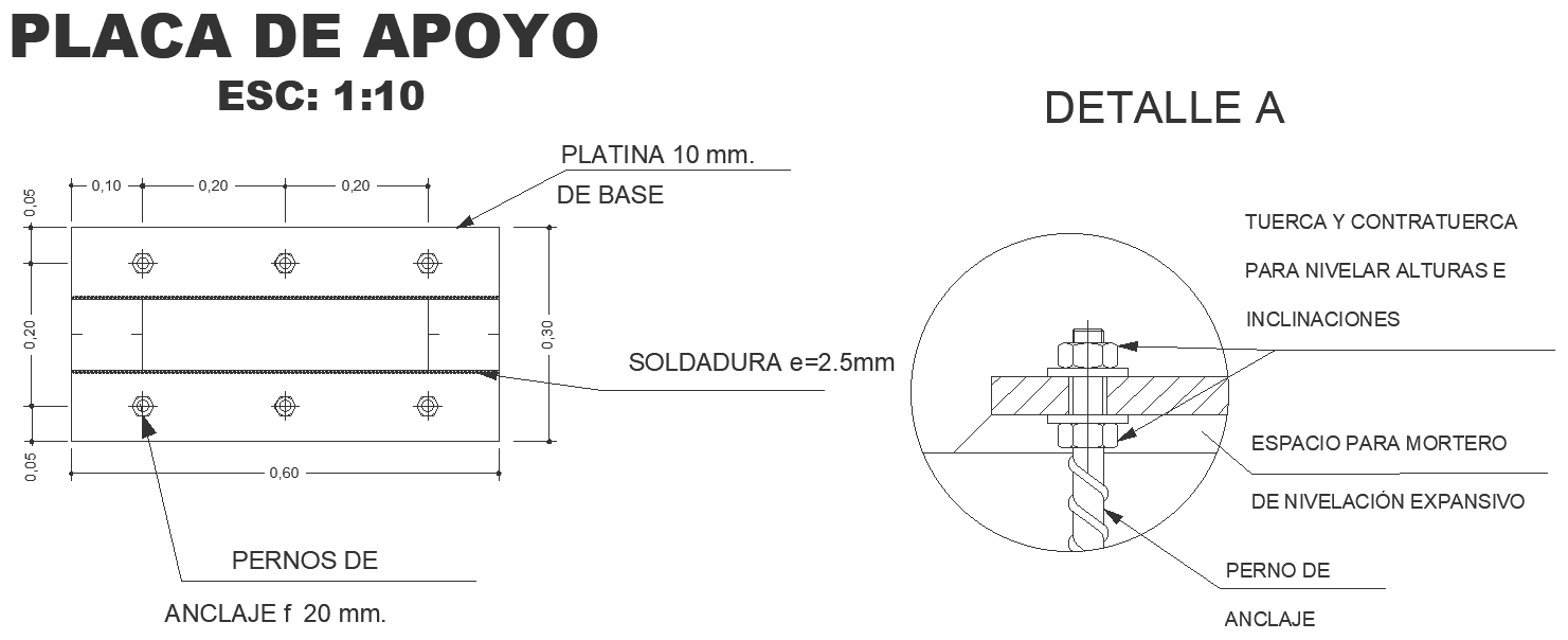 Support plaque at scale one is to ten and and anchorage for light details dwg autocad drawing .
