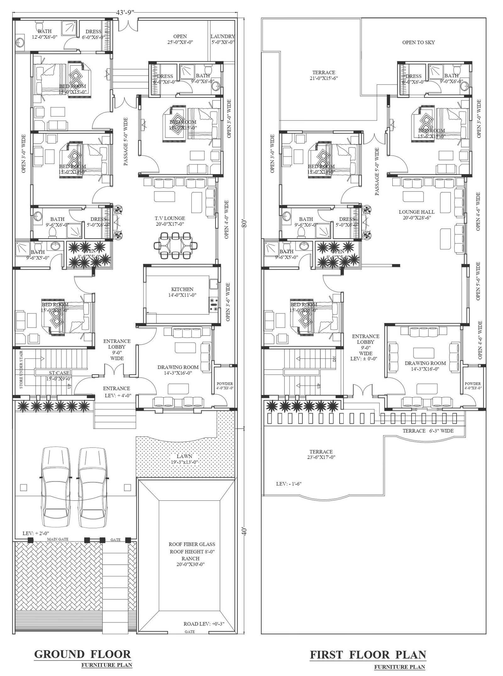 20ft X 30ft RANCH design with fiber glass roof in double storey 7bhk house detailed plan DWG autoCAD drawing