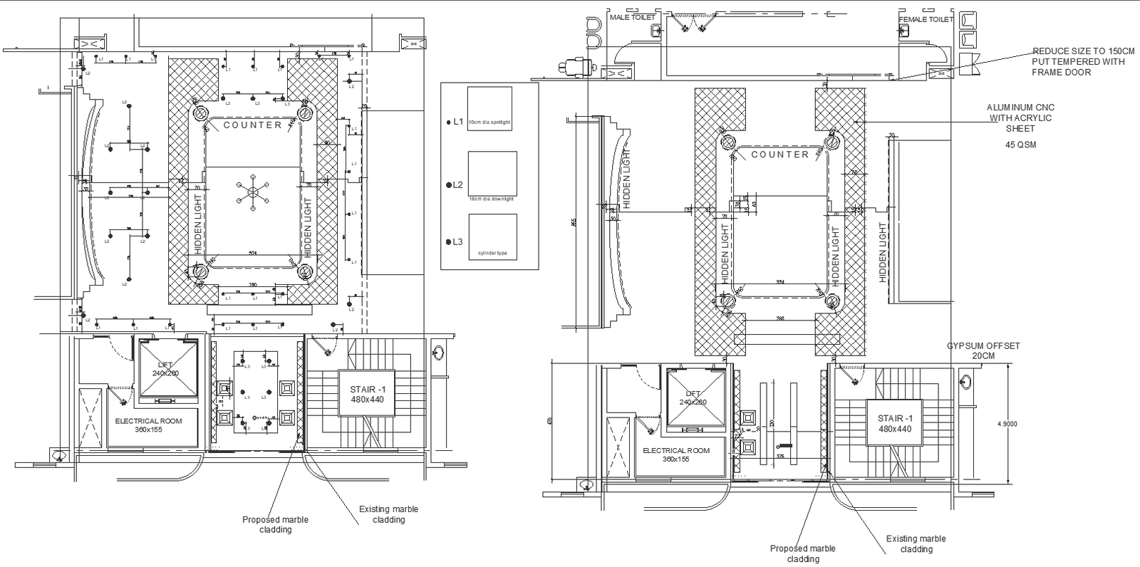 Explore our meticulously crafted AutoCAD drawing showcasing the ceiling layout with comprehensive light details and schedule. This DWG file provides a detailed overview of the ceiling design, including the placement of hidden lights, open lights, spotlights, and counters.With precise dimensions and annotations, users can easily understand the spatial arrangement of lights and plan their installation effectively. The accompanying schedule offers valuable information on the types and quantities of lights required, facilitating seamless procurement and installation processes.Optimized for search engines, this description incorporates keywords like "ceiling layout," "hidden lights," "open light," "spotlight," and "counter," ensuring easy discovery by users seeking detailed ceiling designs for their projects.Download our DWG file to access a comprehensive guide to ceiling layout and light details, streamlining the design and implementation of your interior spaces.