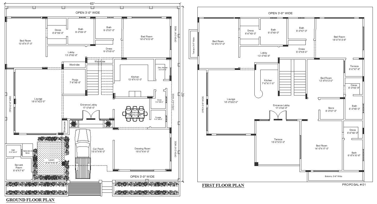 Luxurious villa design on plot of 60 X 60 ft detailed all floor plan section and elevation DWG autoCAD drawing