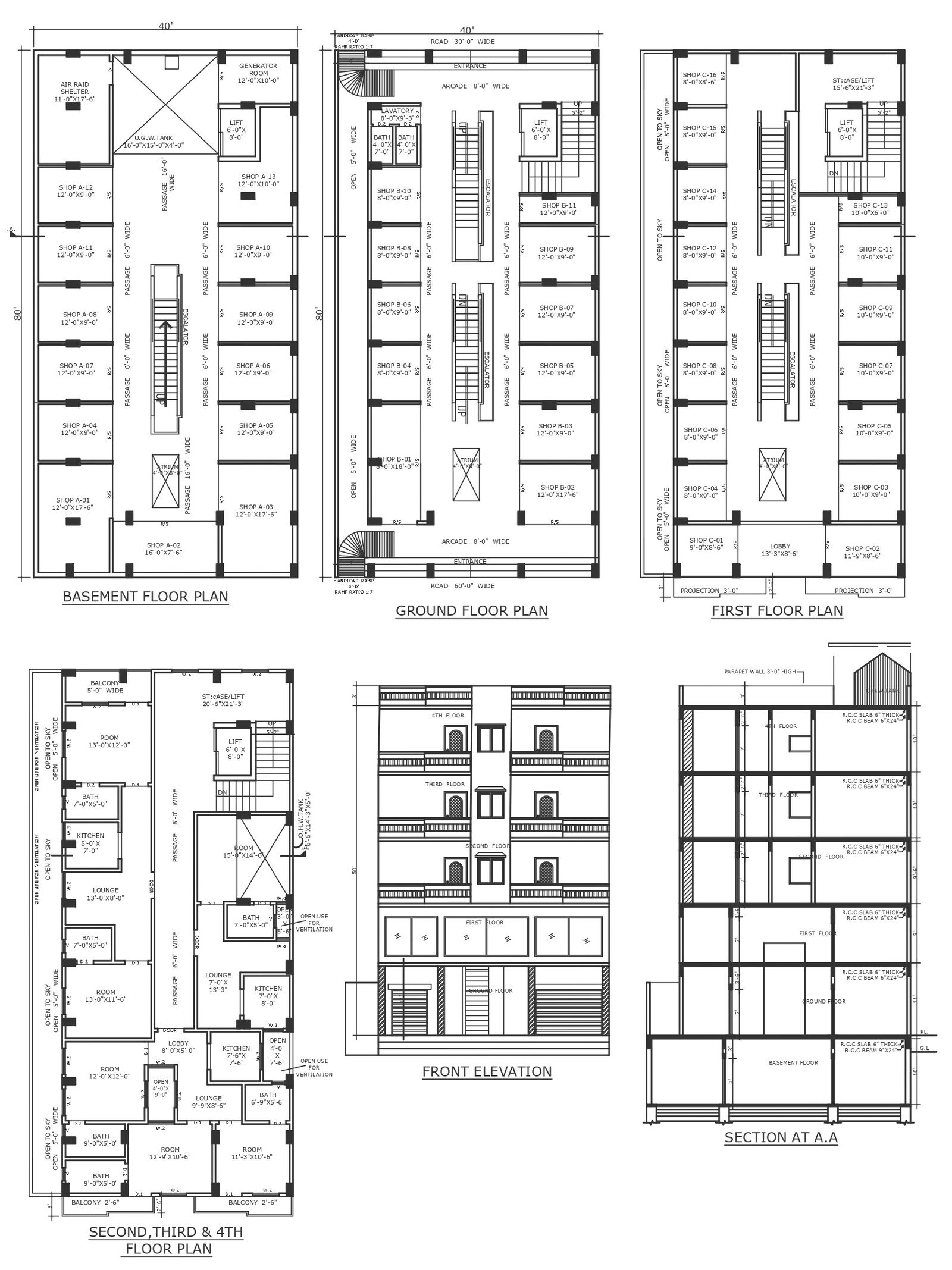 Low rise apartment design with section detail of every floor DWG autoCAD drawing