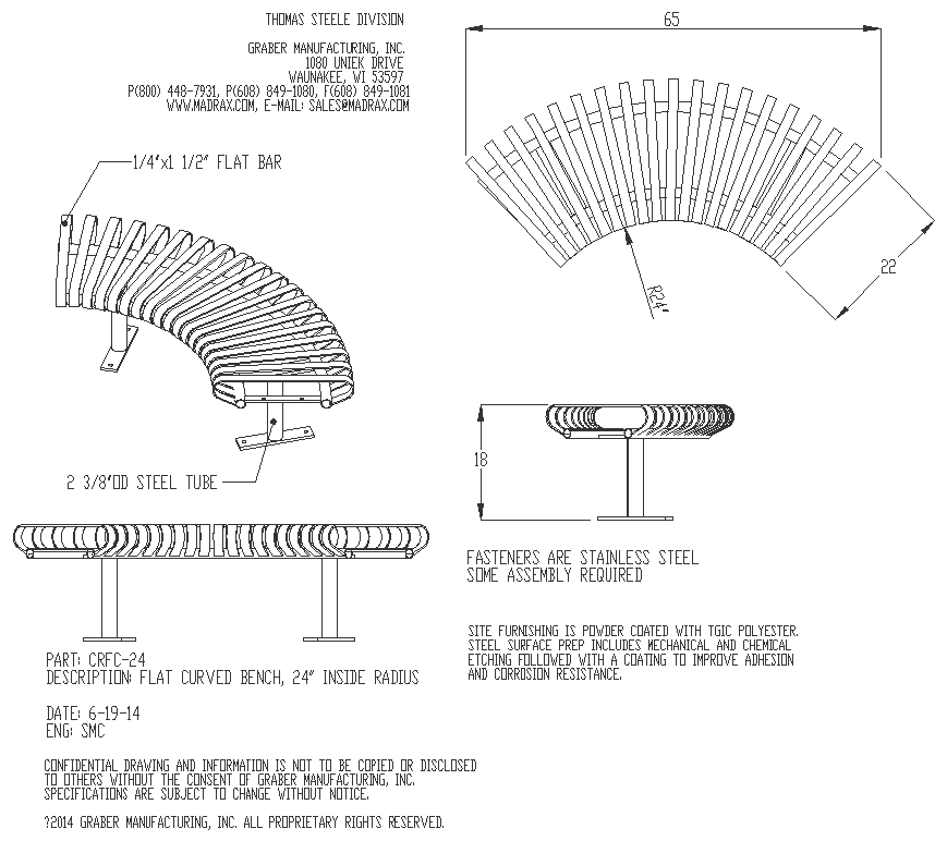 Flat curved bench design with 2ft inside radius of stainless steel material detailed plan sections and elevation with 3D view DWG autoCAD drawing