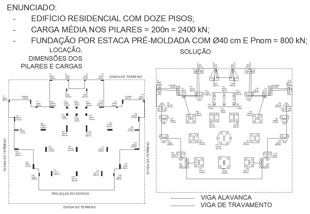 Residencial building with twelve floors with average load on pillars is 2400KN detailed foundation plan DWG autoCAD drawing