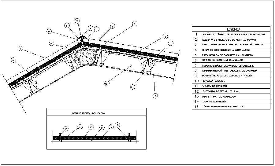 Construction of ridge design with legend dwg file with view of legend and detail view.