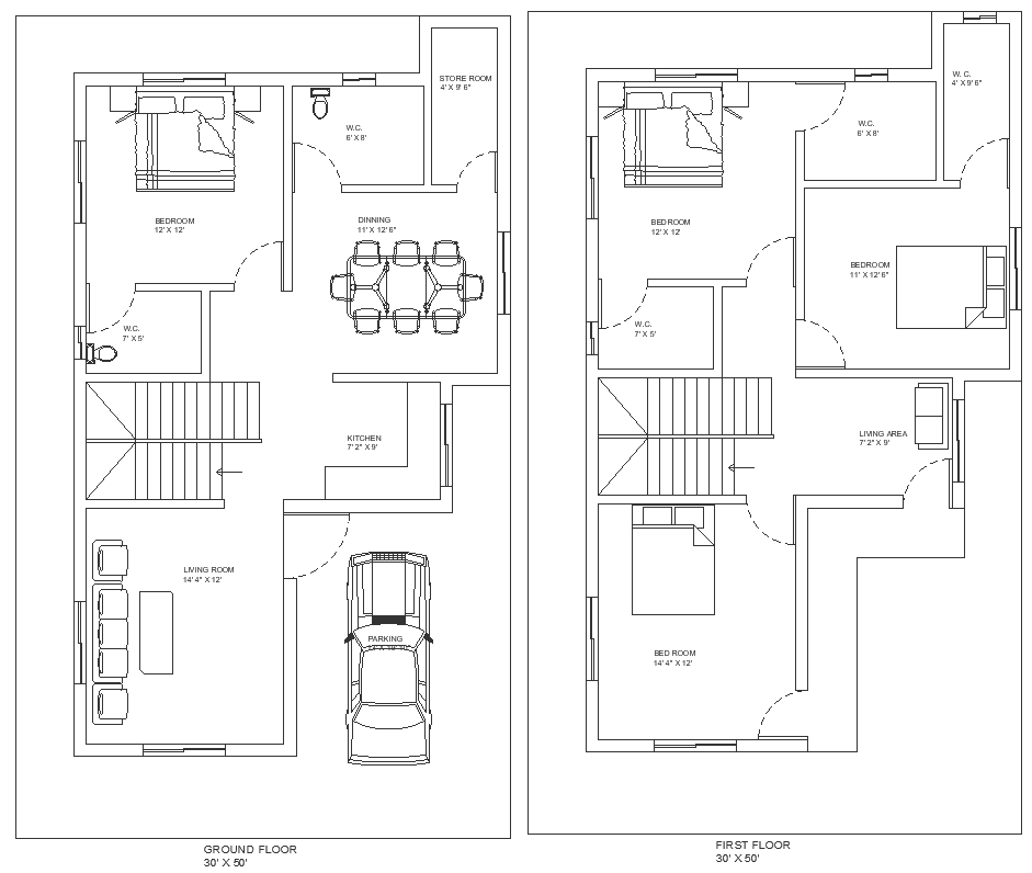 Double storey house plan with four bedroom design DWG autoCAD drawing
