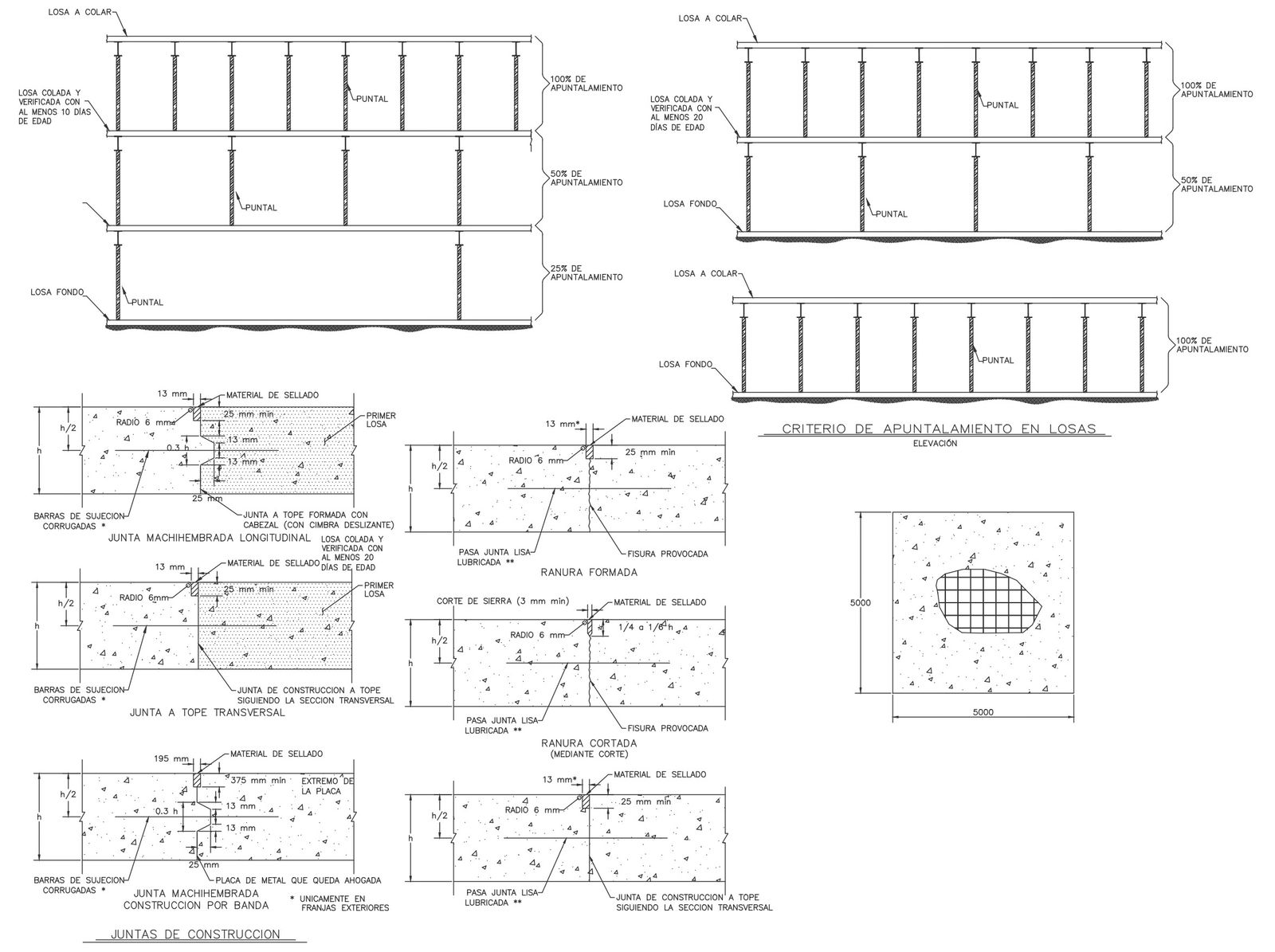 Explore the detailed construction joint and shoring criteria for slab design with our comprehensive AutoCAD DWG drawing. This drawing provides valuable insights into construction joints and shoring requirements, essential for architects, engineers, and construction professionals. Dive into the detailed section and elevation views to understand the reinforcement layout, division walls, and structural elements involved in slab construction. This CAD drawing covers crucial aspects such as construction joint detailing, reinforcement placement, and shoring criteria, offering practical guidance for effective slab design and construction. Access this AutoCAD file to enhance your knowledge and optimize your construction workflows. Gain valuable information on slab construction techniques, reinforcement detailing, and structural considerations with this comprehensive construction joint and shoring criteria drawing. Download now to leverage this resource for improving your architectural and engineering projects.