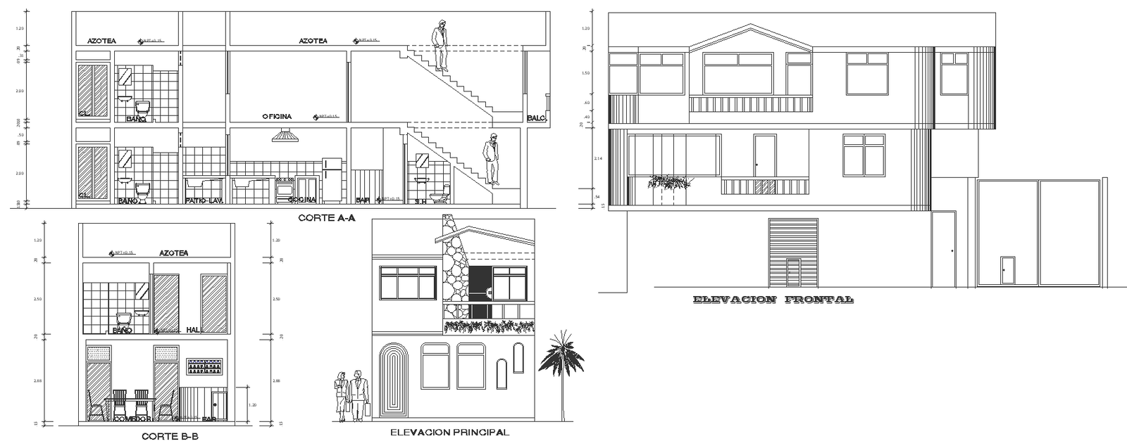 Double storey house plan section and elevation detail with material in scale DWG autoCAD drawing