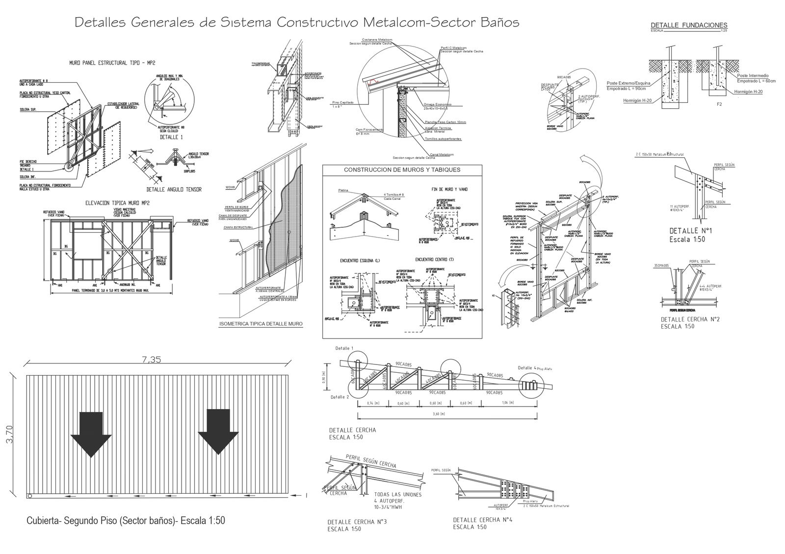 General details of the metalcom sector bathrooms construction system DWG autoCAD drawing