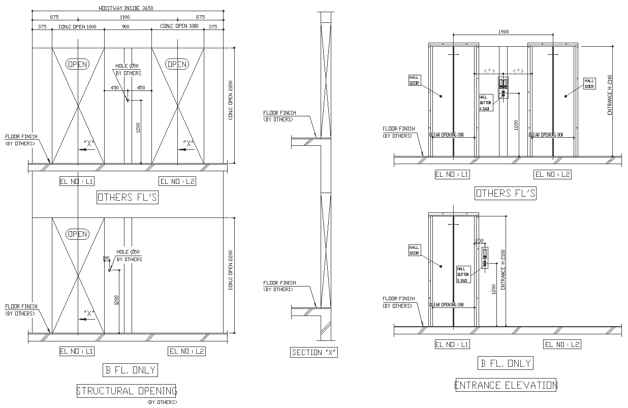 Discover the intricate details of entrance elevation and structural openings on every floor with our meticulously crafted AutoCAD DWG drawing. This comprehensive drawing provides a detailed overview of lift design, structural openings, entrance elevations, and dimensions, making it an invaluable resource for architects, engineers, and designers alike.With clear labeling and precise dimensions, our DWG file ensures accuracy and efficiency in your architectural projects. Whether you're planning new constructions or renovating existing structures, our drawing serves as a reliable reference to streamline your workflow and bring your vision to life.Download our DWG drawing today to explore the intricate details of entrance elevation and structural openings on every floor. With clarity and confidence, create spaces that are functional, aesthetically pleasing, and tailored to your specifications.