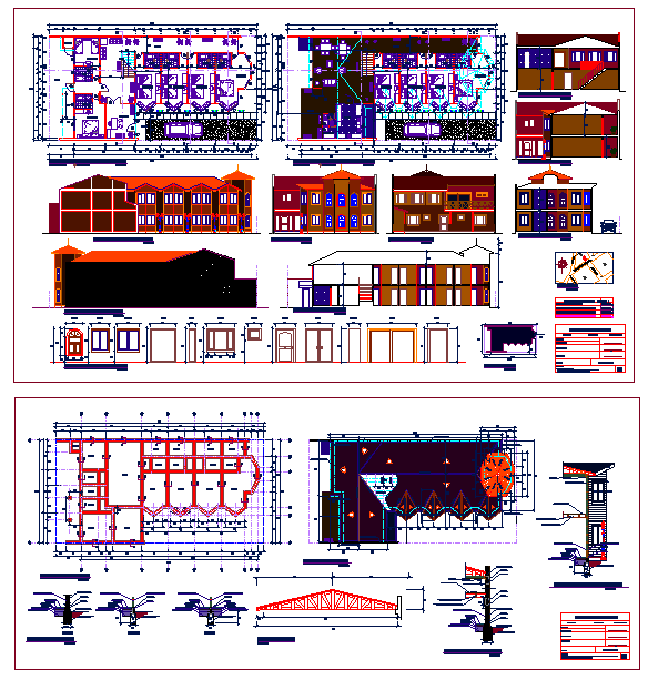 Wooden hostel plan with Layout and Elevation dwg file.
