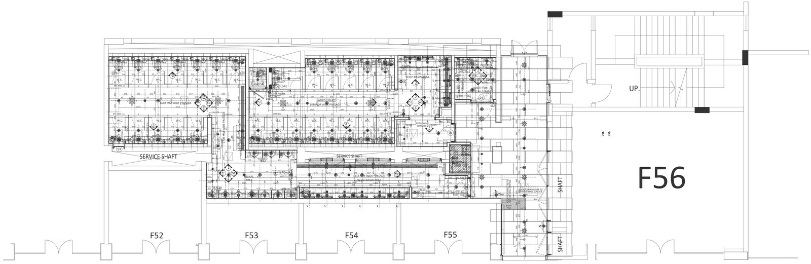 Fifty capacity toilet design with female and male section dwg autocad drawing .