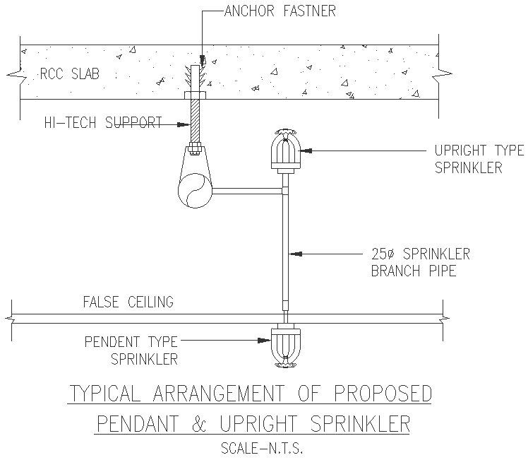 Upright sprinklers fitting details with false ceiling details dwg autocad drawing .