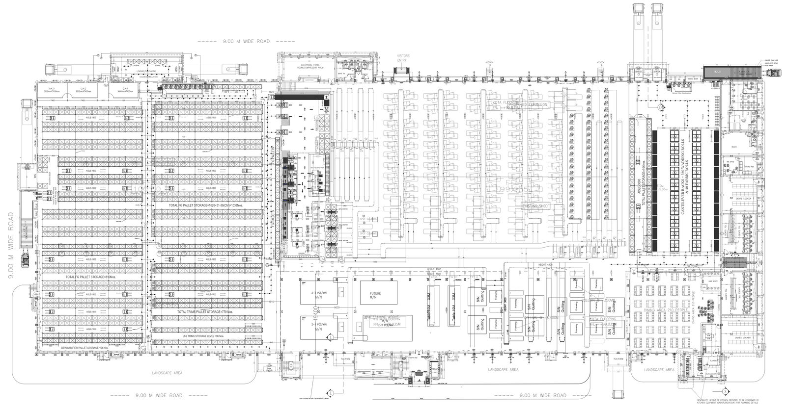 Factory design with dedicated space for folding boxes and storage details dwg autocad drawing