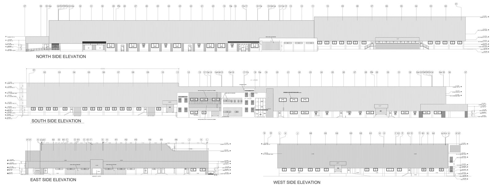 Factory design with all side elevation design and entrance details dwg autocad drawing .