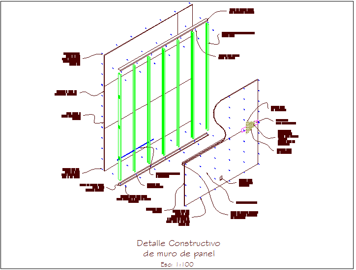 Constructive detail of panel wall design dwg file with view of constructive detail of