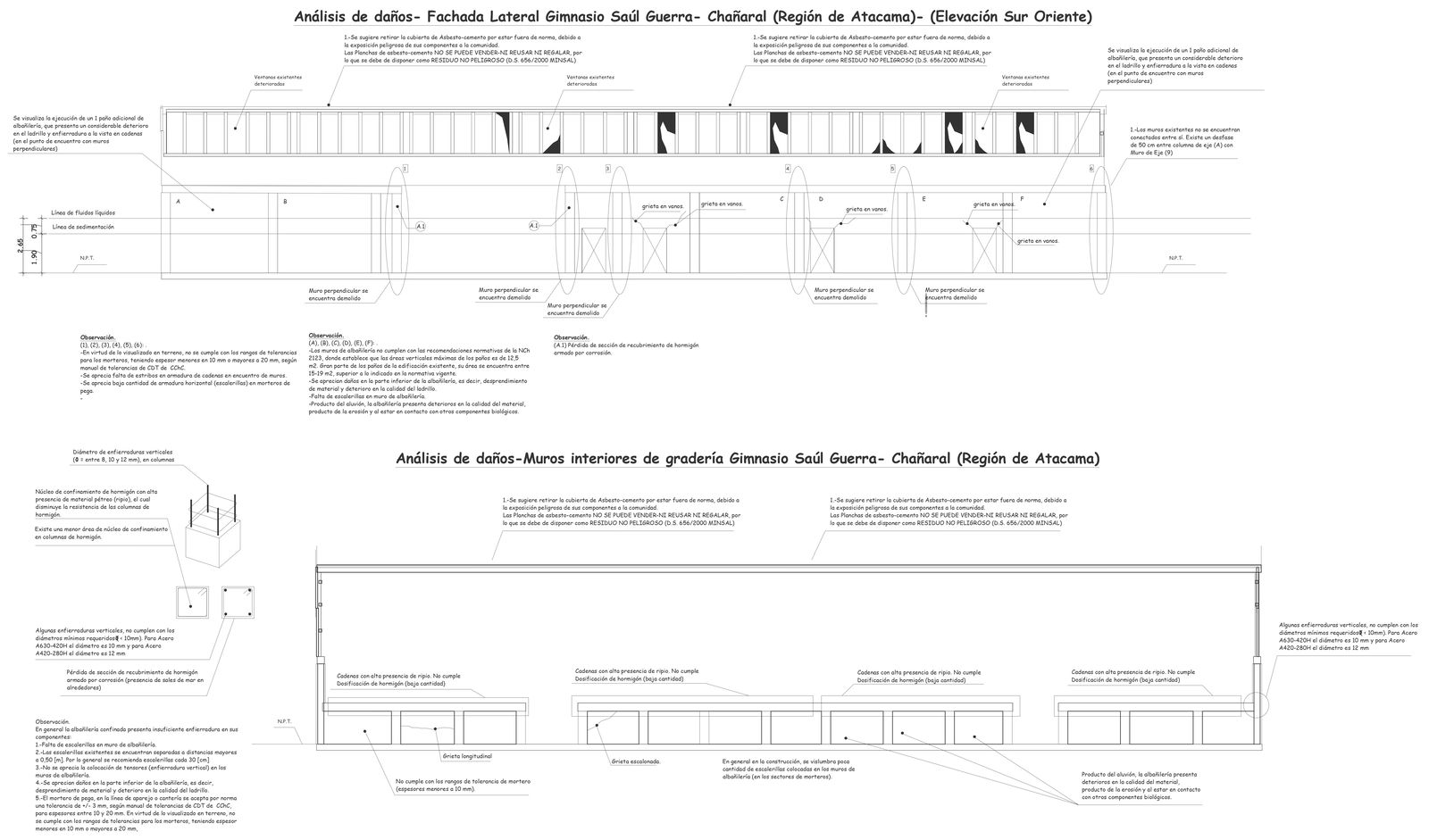 Damage analysis interior walls of the gymnasium stands south elevation DWG AutoCAD file