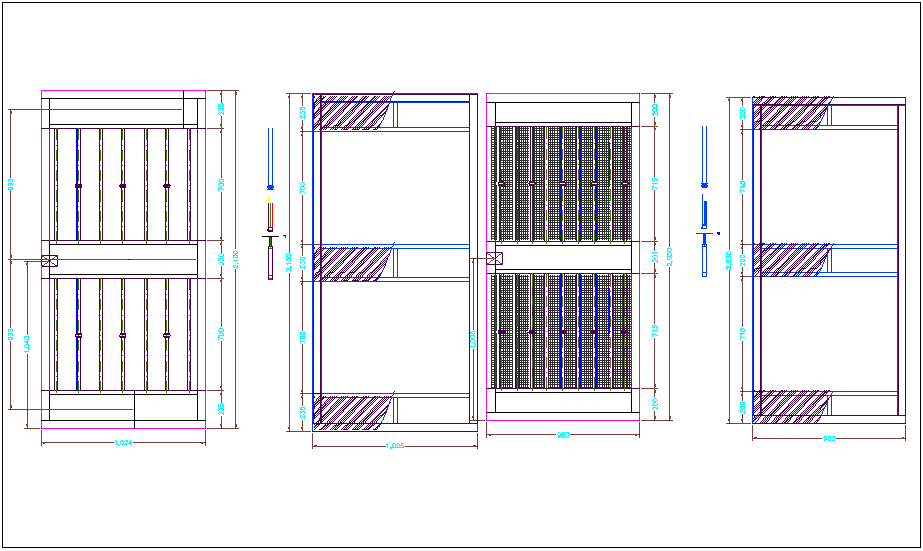Metallic door design view with dimensional view dwg file with view of single door design view with different model and dimension of door with pipe,mesh and rectangular shape design of door.
