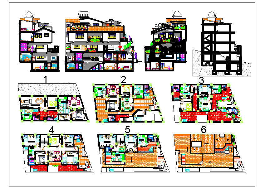 Bungalow Elevation Design dwg file.