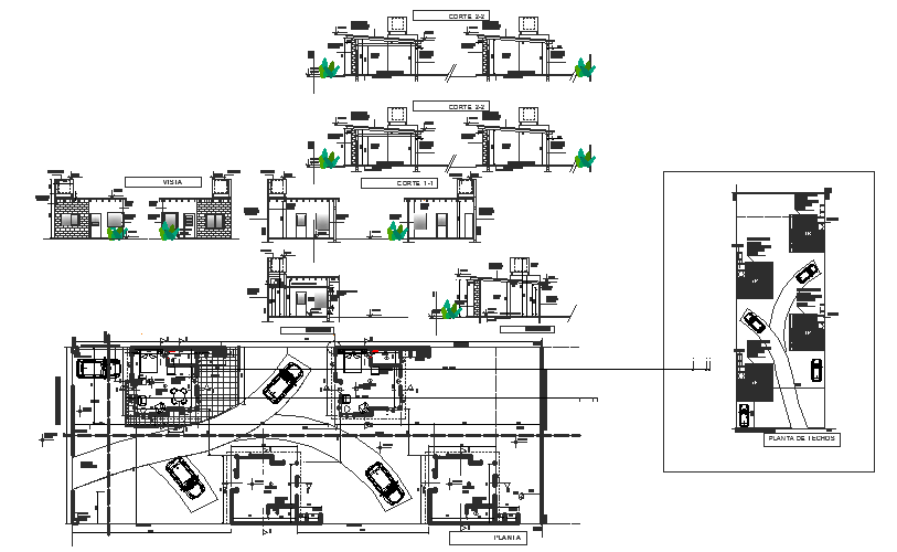 Here the detailed drawing of 4 room appartement for summer with plans, sections and elevation showing details like dimension details in both plan and elevation, roofing type, foundation details, etc., in autocad drawing.