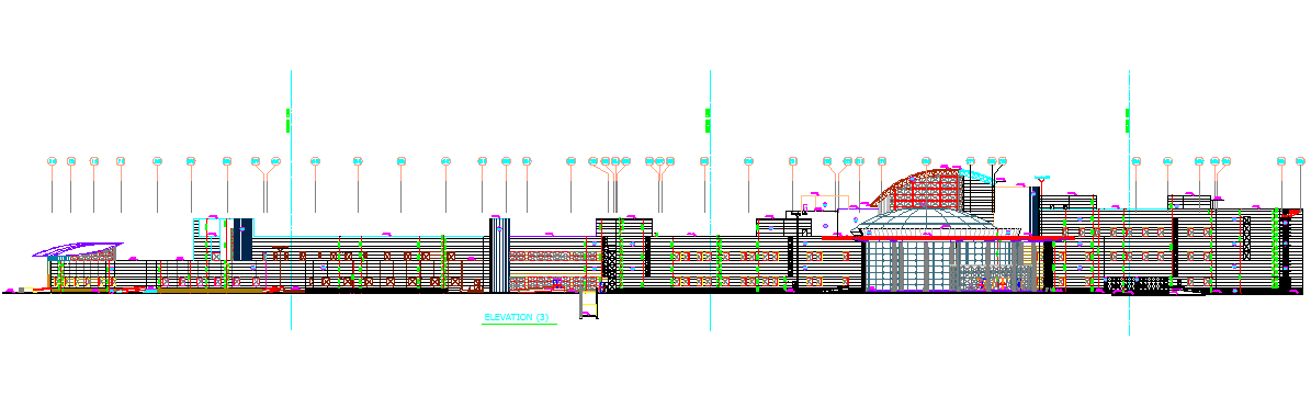 Architecture Plan of Government Museum that includes elevation and section view of entry gate with circular roof view, entrance cabin, exit gate, door and window elevation view and much more of government museum.