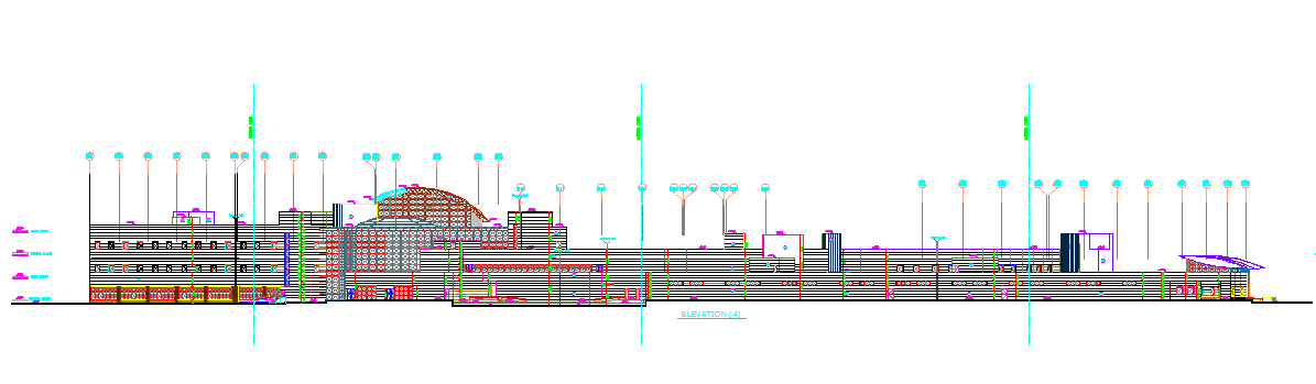 Government Building plan that includes entry gate, security cabin, broad walk path, floor wise elevation view, door and window, circular roof view and much more of government building.
